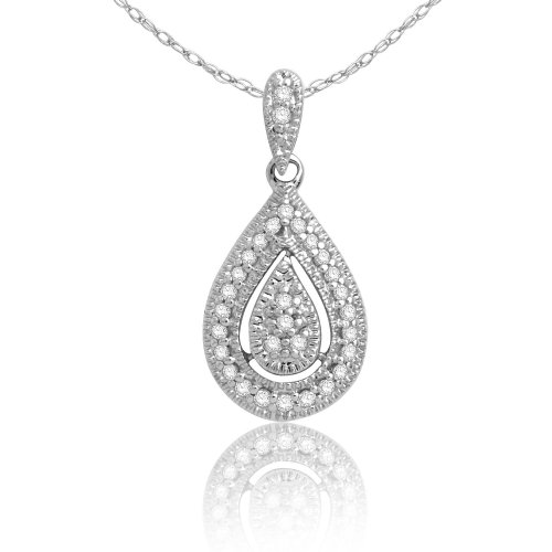10k White Gold Diamond Teardrop Pendant (1/10 cttw, H-I Color, I2 Clarity), 18"