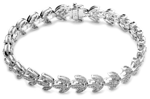 Like a shimmering garland for your wrist, this leaf design bracelet sparkles with 100 single-cut diamonds (1 cttw) set in polished 14 karat white gold. Trios of leaf shapes with milgrain edging form the links. The 7-inch bracelet is finished with a traditional tongue-in-groove clasp.