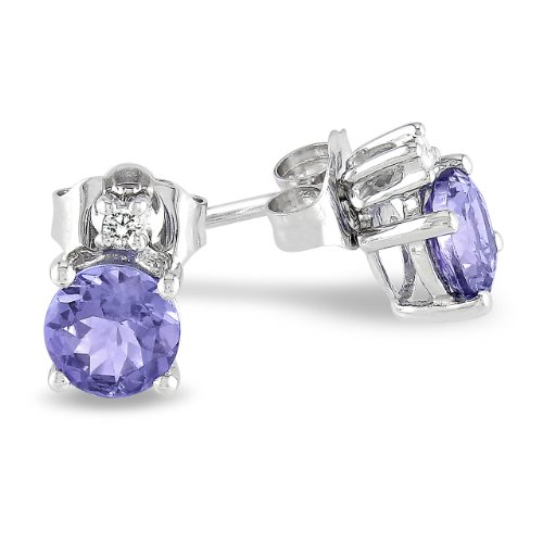 10k White Gold Tanzanite and Diamond Stud Earrings (0.02 cttw, GHI Color, I2-I3 Clarity)
