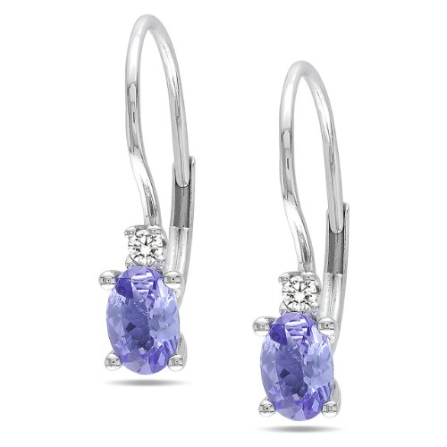 10k White Gold Tanzanite and Diamond Leverback Earrings (0.06 cttw, GHI Color, I2-I3 Clarity)