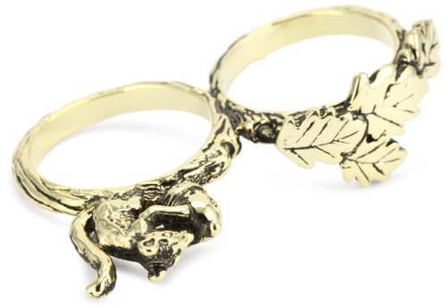 Beyond Rings "Enchanted" Squirrel and Acorn Two Finger Ring, Size 7/8