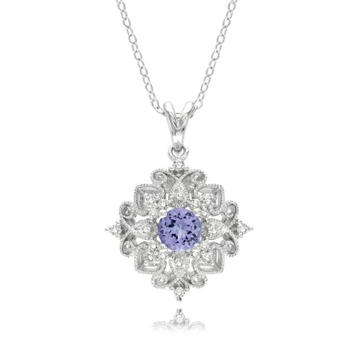 Sterling Silver Tanzanite and Diamond Pendant (1/6...